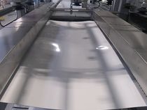 Diseño de máquina «en línea» con sistema de transporte por cadena dentada. Las láminas se centran automáticamente y se desplazan rápidamente en la estación de formado. La pieza formada se descarga suspendida por los bordes, sin tocar la pieza moldeada. Esta función es la solución óptima para piezas con un embutido negativo importante.