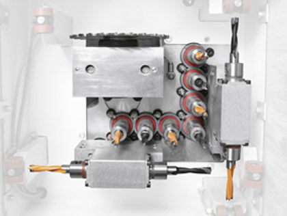 Para una mayor versatilidad de la máquina, es posible dotar los portabrocas con varias tipologías de cabezales opcionales capaces de realizar prácticas bisagras