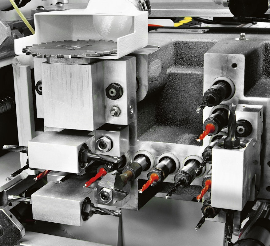 El nuevo taladro universal equipado con sierra de corte en CN con mesa de trabajo con puerta fija y pieza móvil
